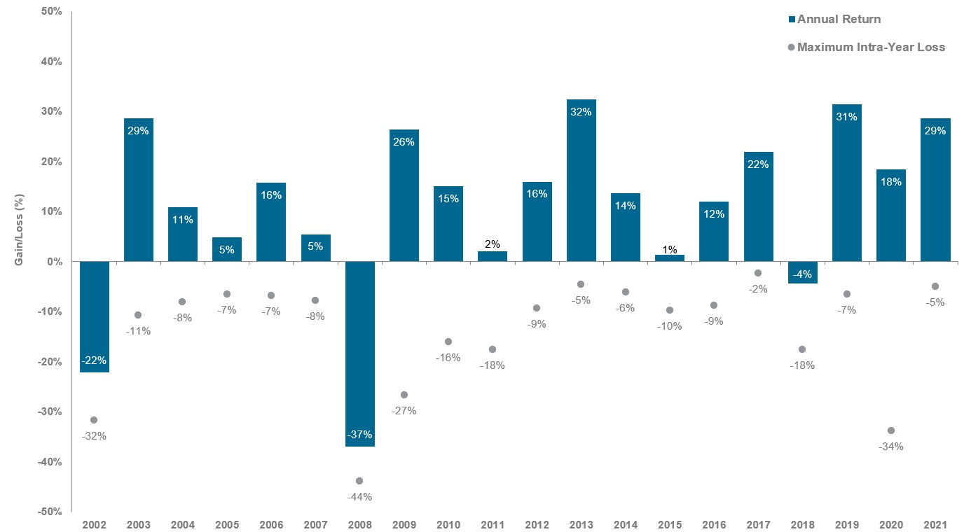 A favorite quote of ours at Baird (and we love quotes) is “short-term volatility is the cost to participate in the stock market’s long-term gains.” It’s our way of acknowledging that selloffs, corrections and even bear markets are not just normal – they’re a part of the process of being a long-term investor. If there were no volatility or risk, there would be no reason for stocks to perform so well over the long run.